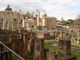 Our real interest, however, was in the Forums. Here's a nice layout (from Wikimedia) of the Roman Forums, as they would originally have been: