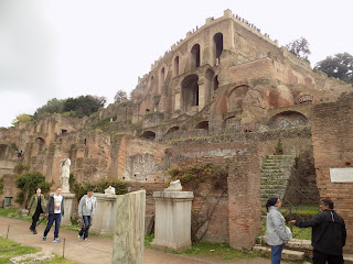 Rome is not as easy to navigate, nor as friendly to tourists, as Florence, so it helps to have a tour guide. (Tour guides have to be properly licensed, and apparently it is both difficult to pass the licensing test and the police rigorously enforce the license requirements.) Our tour guide was Ilaria Marsili, who was excellent. Tuesday afternoon we met up with her to explore ancient Rome, particularly around Palatine Hill.