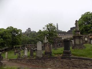 From the area around the Kirk we walked briefly to the University of Edinburgh -- which was closed at the time, so there wasn't really anything to see -- and then up to Calton Hill and the Old Calton Cemetery. The big attractions of the cemetery stand out and are easy to find: