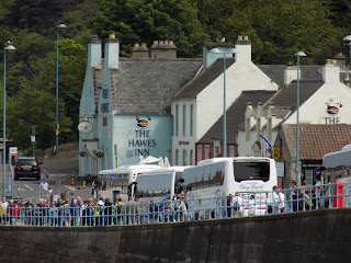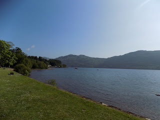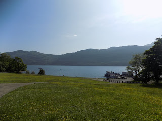 We took a basic Rabbie's tour of Highland lakes and castles out of Glasgow, just to see the sights, and we did indeed see lakes and castles. First stop: Tarbet Pier on the bonnie, bonnie banks of Loch Lomond, in Loch Lomond and The Trossachs National Park. Loch Laomainn means 'Lake of Elms', but it is occasionally known as the Lake of Light, and here we sit it living up to its nickname.